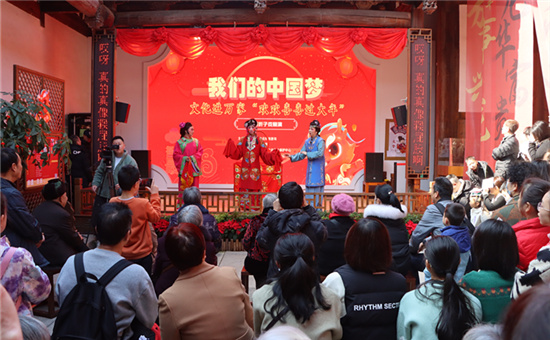 正月初三上午,“欢欢喜喜过大年”闽剧专场演出暨“我们的中国梦——文化进万家”系列活动在市非物质文化遗产展示馆古厝戏台火热开演。来自福州闽剧艺术传承发展中心的青年演员们轮番上阵,为观众献演《招姐做新妇》《荔枝换绛桃》《小放牛》《牡丹亭》《林冲夜奔》等经典好戏。优秀传统剧目与新创佳作接连上演,精彩的表演赢得全场阵阵喝彩和掌声。