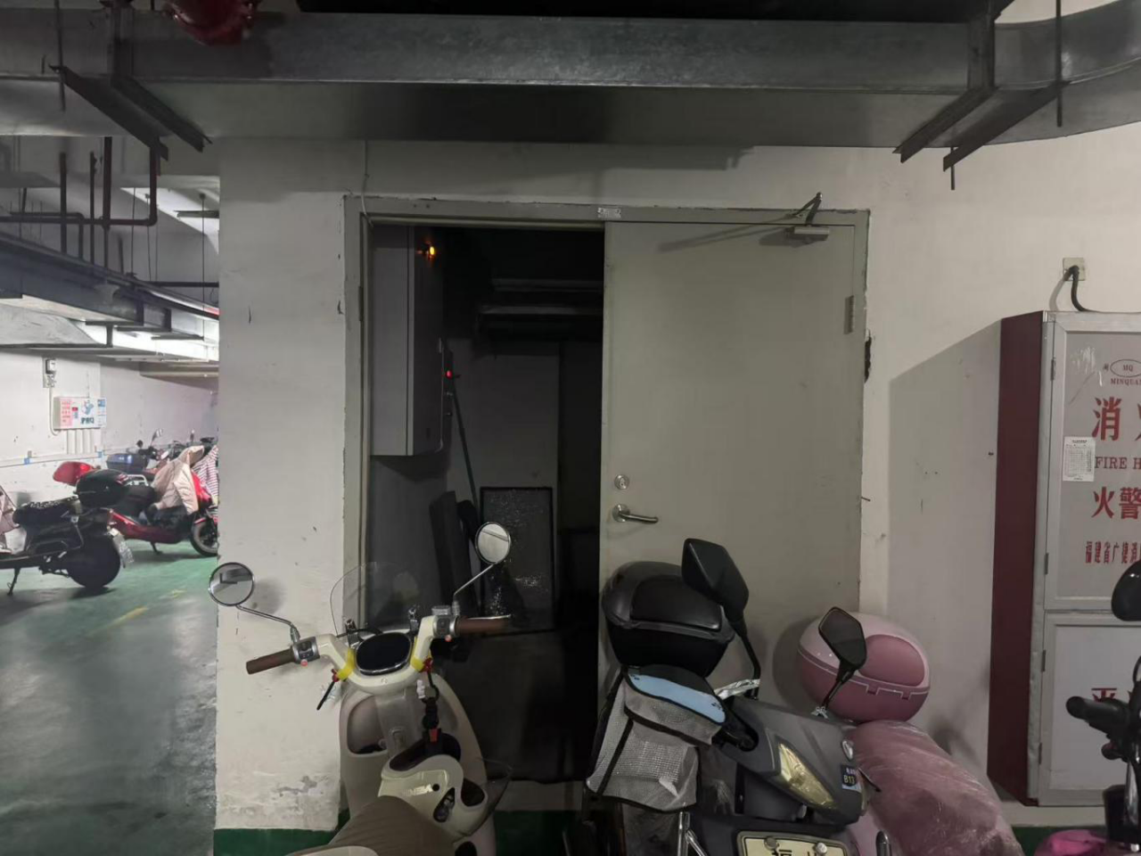 台江区某小区:地下室电动车集中充电点未与排烟风机房分隔,防火门被拆除。